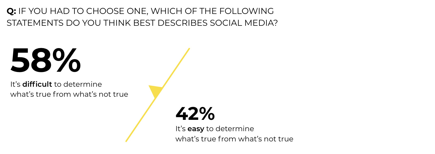 76% of us believe we have seen news that contradicts what we believe to be true.  Tellingly, we’re exposed to misinformation on the platforms we spend the most time with such as social networks, and from sources we should trust most, like the President or News organizations.