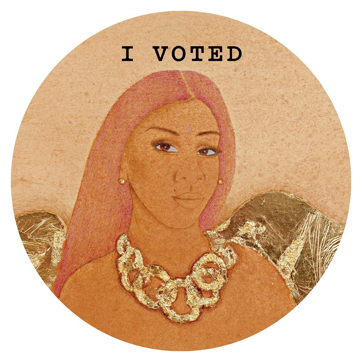The “I Voted” stickers reflect a wide range of perspectives and mediums, from photography to line drawings to bold, graphic text. New York asked several of the artists who participated in the project to share their thinking on the project: