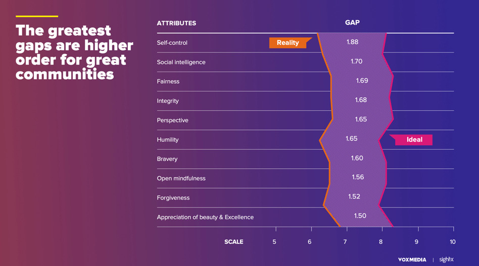 The data shows that our community of consumers have a significantly more positive perception of the digital space, and intend to leverage that perception to activate their daily lives. Furthermore, Vox Media consumers show significantly smaller gaps between their perceived digital lives and the ideal digital life in the future. In addition, and without any shadow of a doubt, Vox Media consumers have a significantly larger sense of self-determined agency across three components: Autonomy, Competence, and Relatedness.