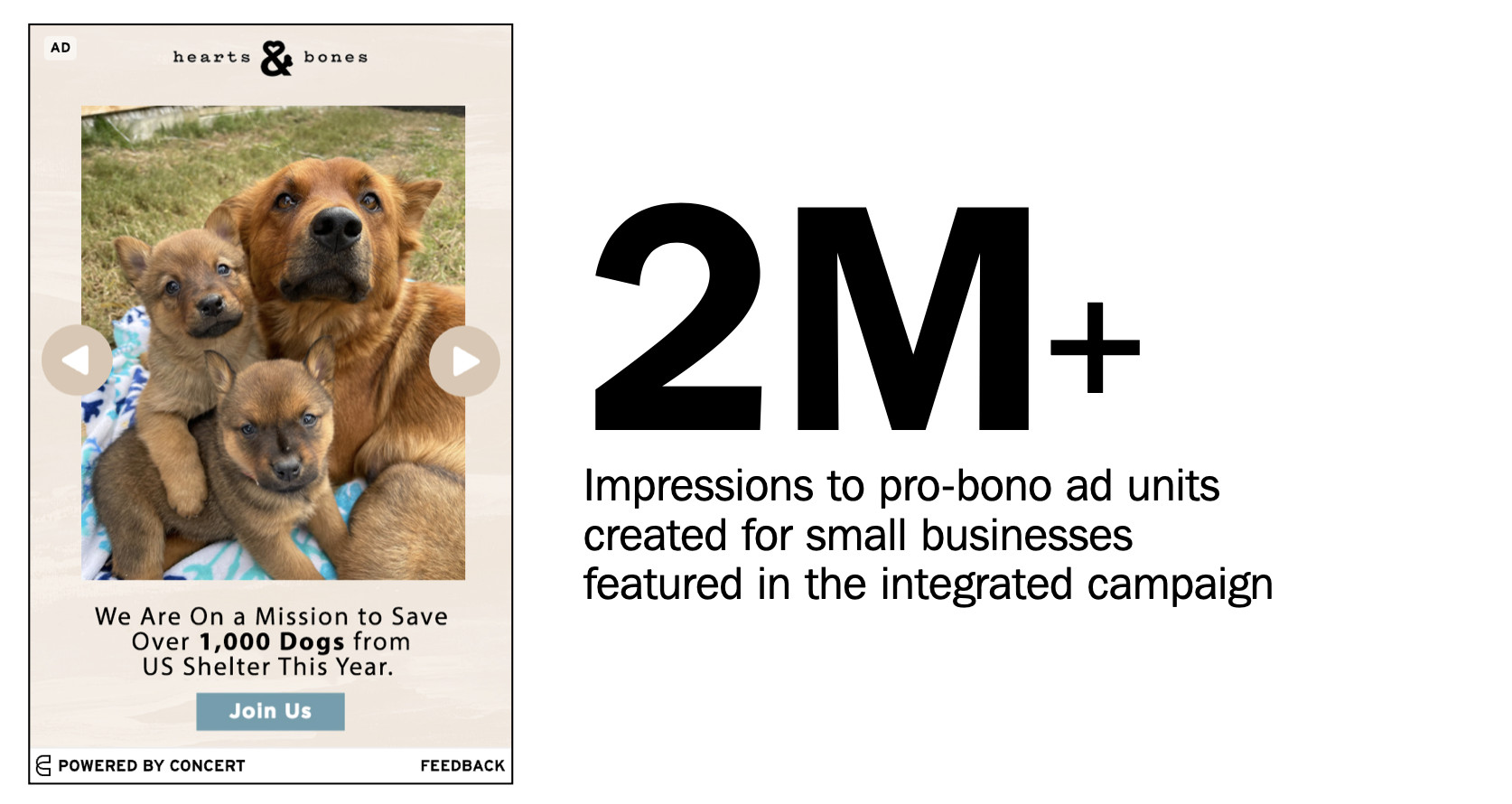 To further support the small businesses featured in the campaign, Vox Media donated media and creative services, creating custom Athena units (Vox Media’s proprietary ad unit) to run across the Concert premium ad marketplace — leading to over 2 million impressions for the small businesses.