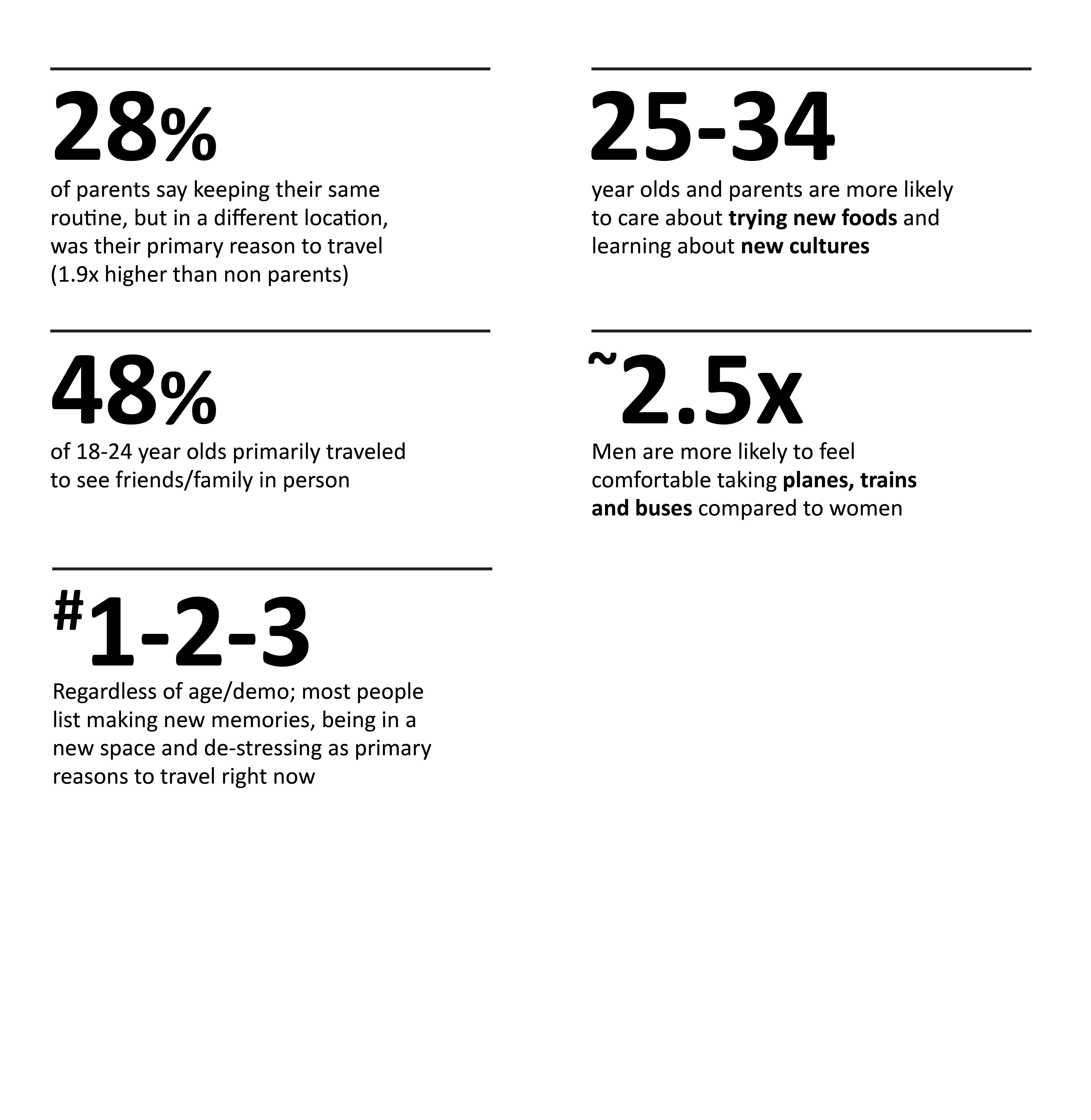 Methodology: Custom Vox Media quantitative survey fielded via Lucid in November 2020. Sample Size: 300 travel intenders and 567 travelers