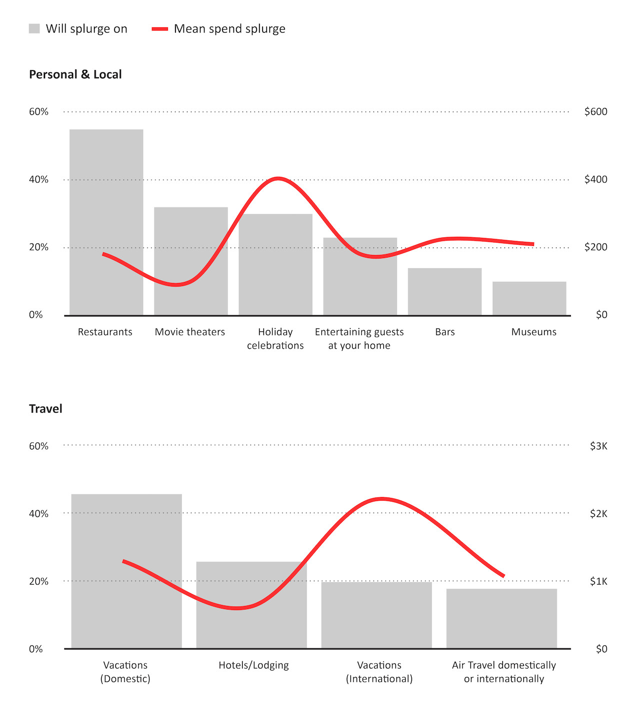 Travel will also play a significant role on where we plan to splurge next, and the numbers are especially strong for those wanting to plan travel domestically across the U.S. Before we plan on going back to events like concerts and sporting events, it looks like we need to get some new clothing.