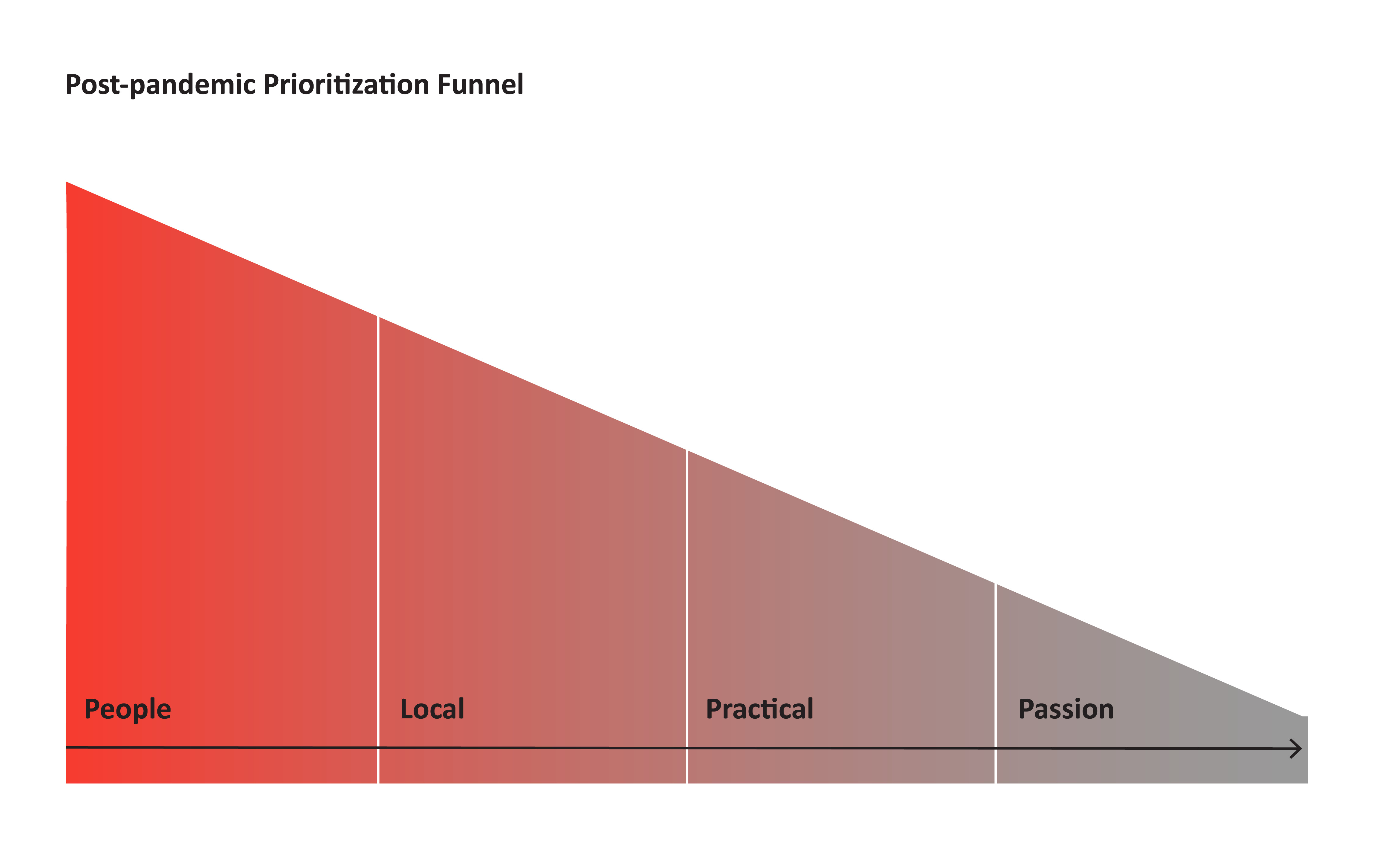 - Consumers are approaching the reopening through the “post-pandemic prioritization funnel”: Personal > Local > Practical > Passion.