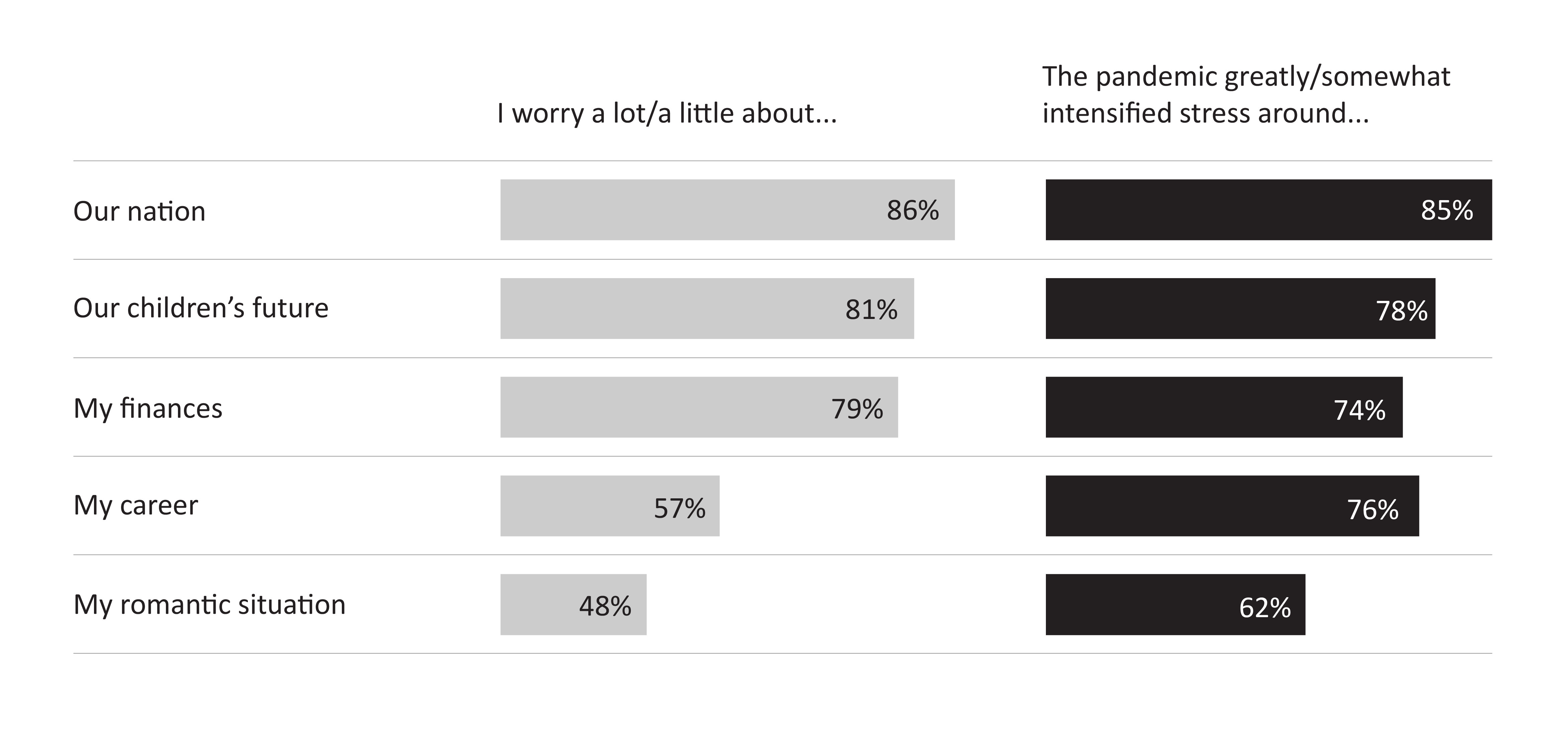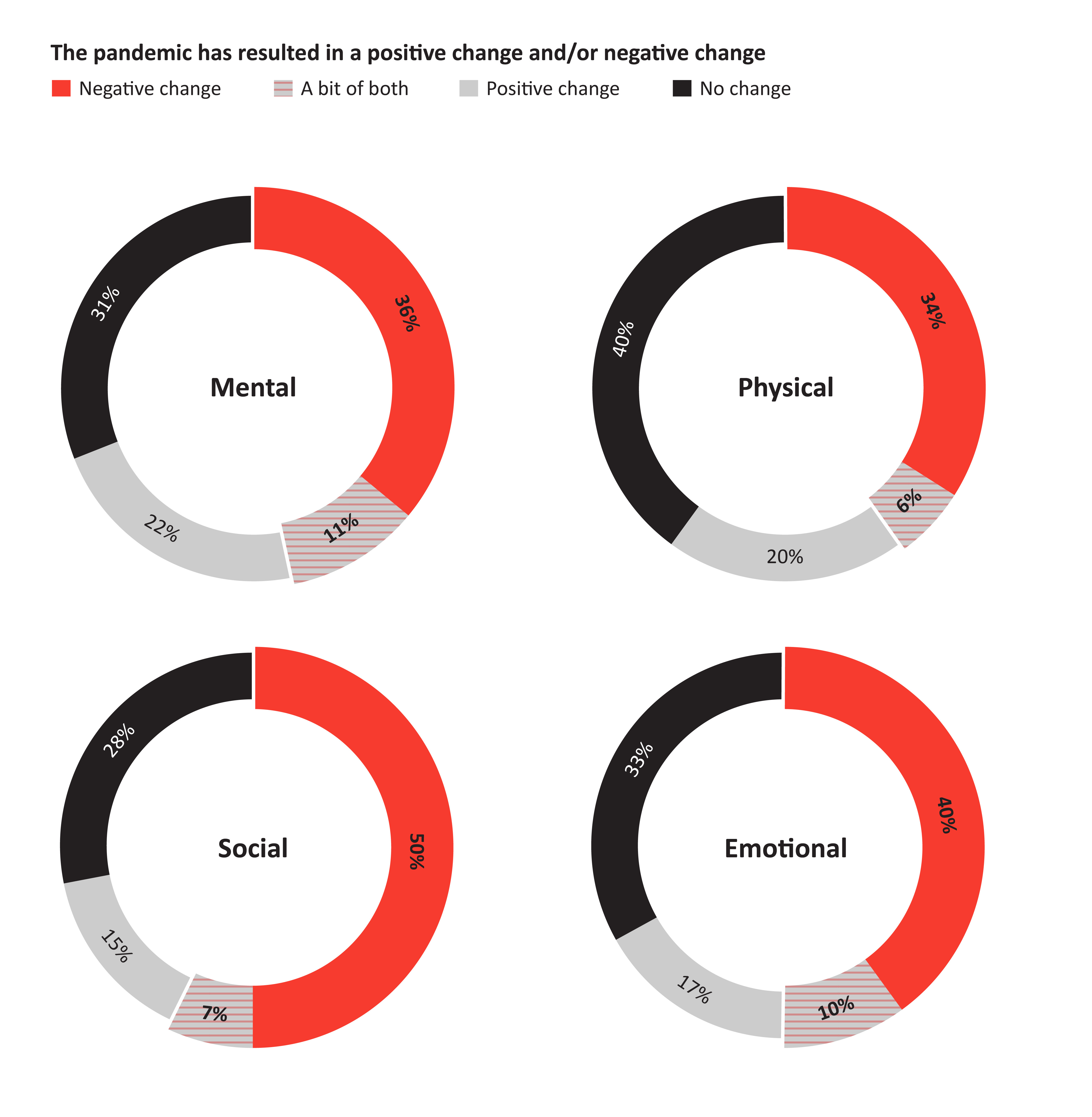 When asked about the effect of the pandemic on various aspects of survey respondents’ well-being: