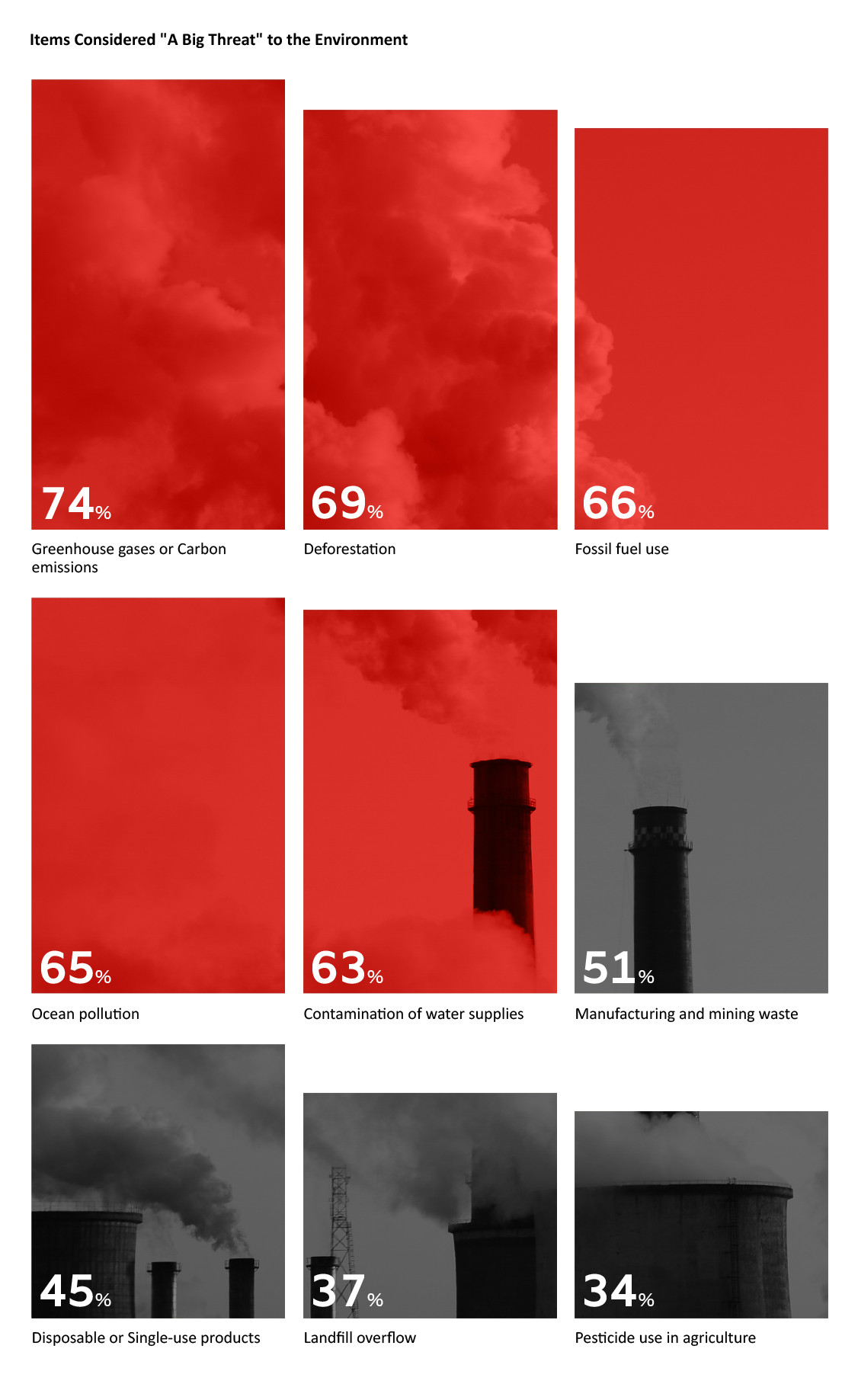 The top perceived threats tie directly to the top threats our audience associates with environmental sustainability: preserving natural resources and lessening carbon emissions.