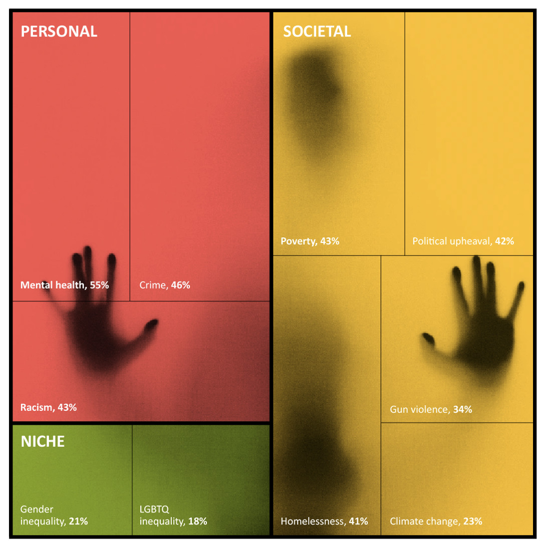 While resolve is strong, most people are still feeling uncertain, and even a bit lost; 67% say they would like help navigating through this time. That presents an opportunity for brands to stop talking about purpose in general terms and focus on what consumers really need. Most say that mental health, racism, and poverty are now chief among their concerns.