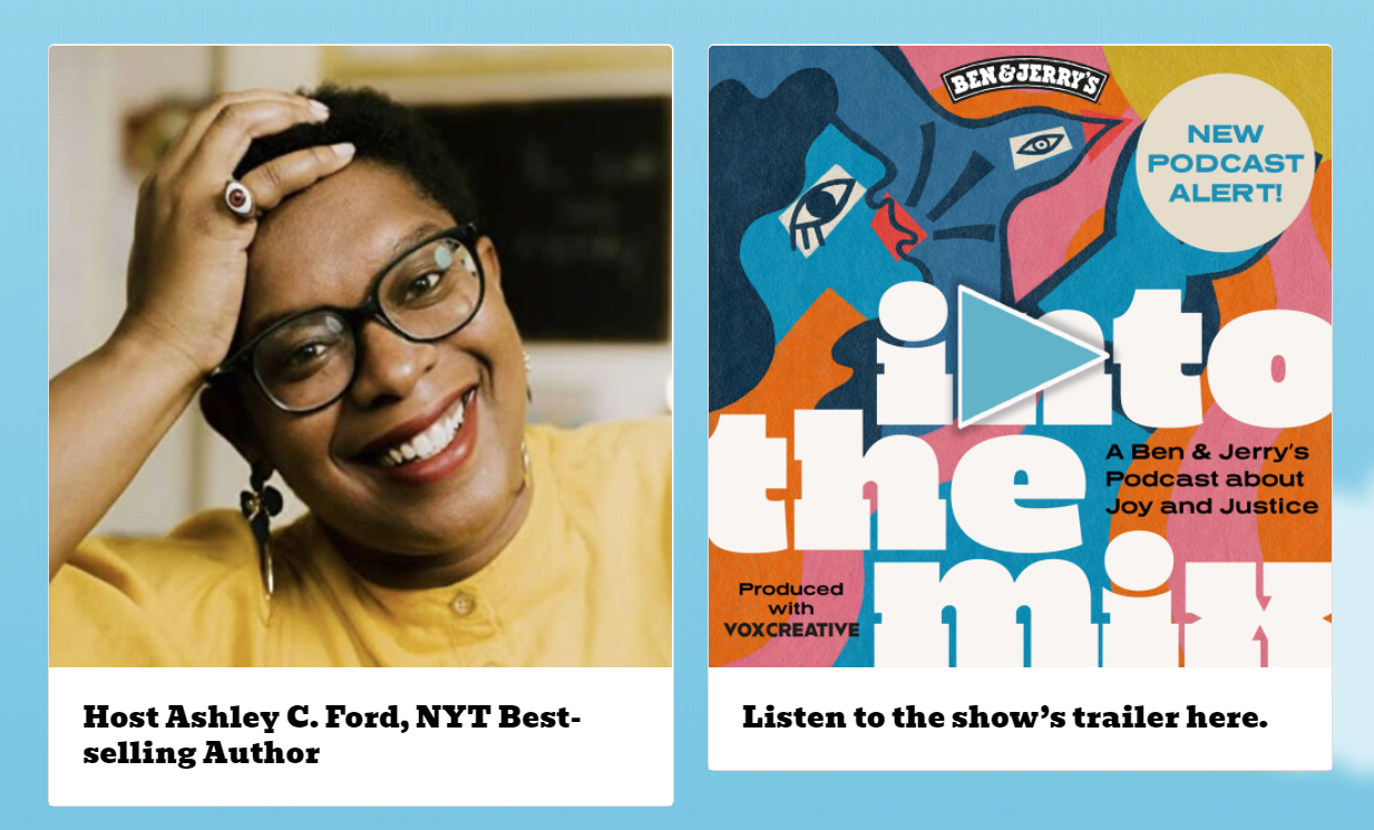 The show, titled Into the Mix: A Ben & Jerry’s Podcast About Joy & Justice is hosted by New York Times best-selling author Ashley C. Ford and features prominent cultural figures reflecting on how they’ve used their influence to champion social change.