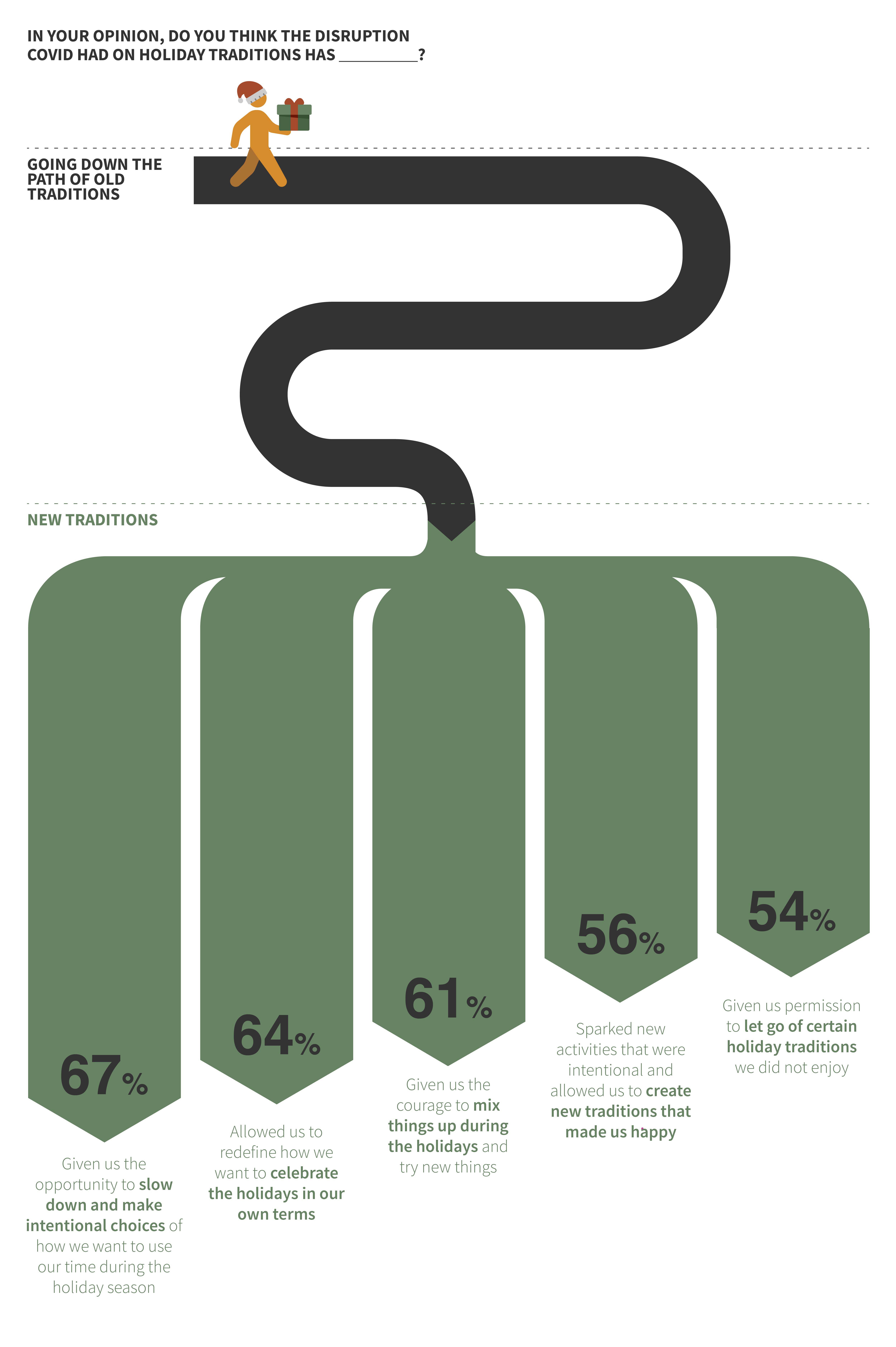 Looking back, consumers admit they felt stuck with holiday traditions they disliked, lacking the courage to speak up or embrace new traditions. Covid-19 gave people permission to shake things up and find new, creative ways to celebrate without being confined to old holiday traditions. Eager to celebrate in ways that make them truly happy, over one in four consumers say they have a new holiday tradition they created in the past two years that they will be using this upcoming holiday season.