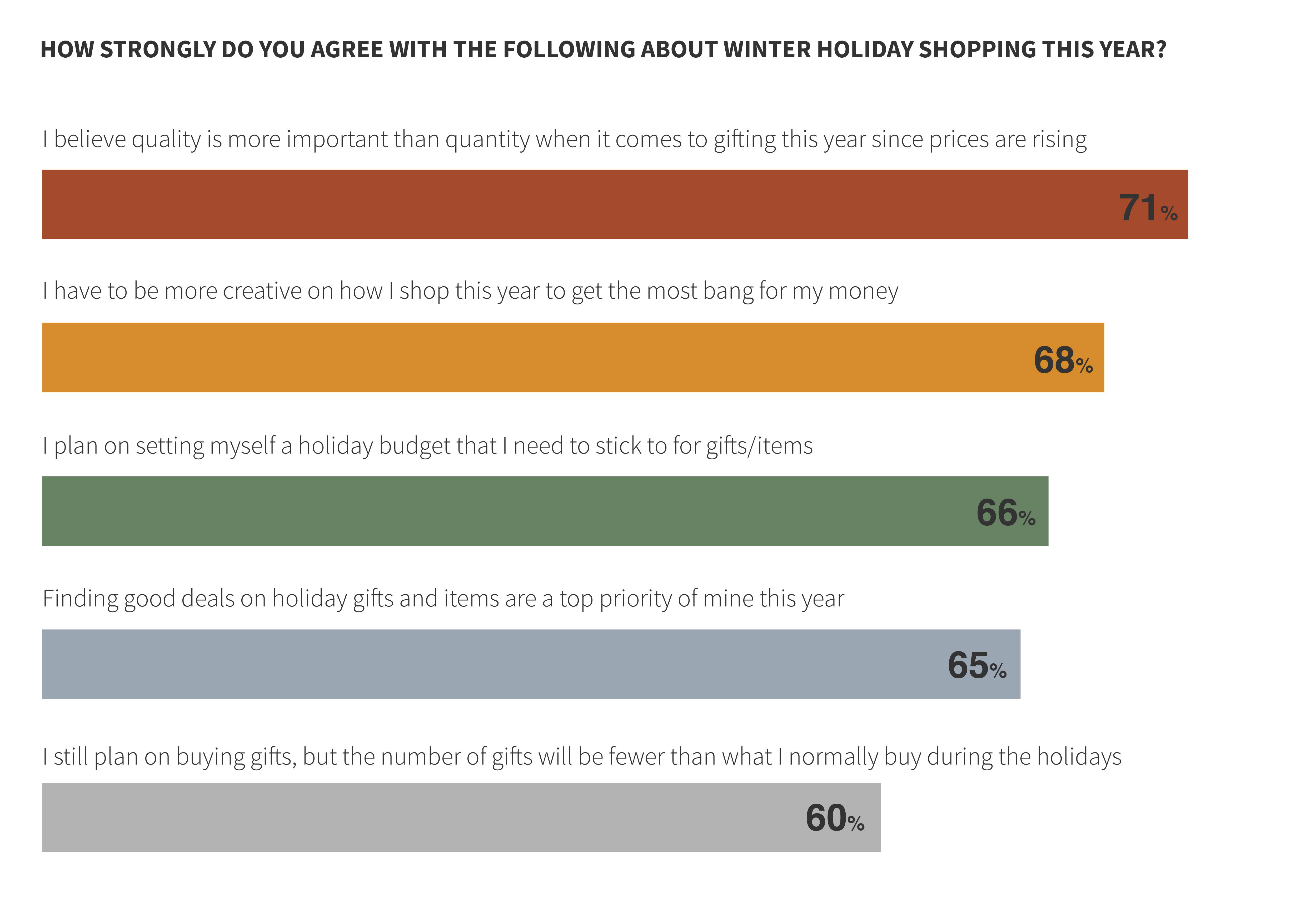 Consumers are looking forward to large, in-person holiday gatherings once again. 79% of those surveyed say their main priority is being able to spend quality time with loved ones given everything that has happened. If they had to choose, half say they would rather spend their money on whatever is needed to ensure they can celebrate in-person with family and friends, emphasizing the importance of being with loved ones.