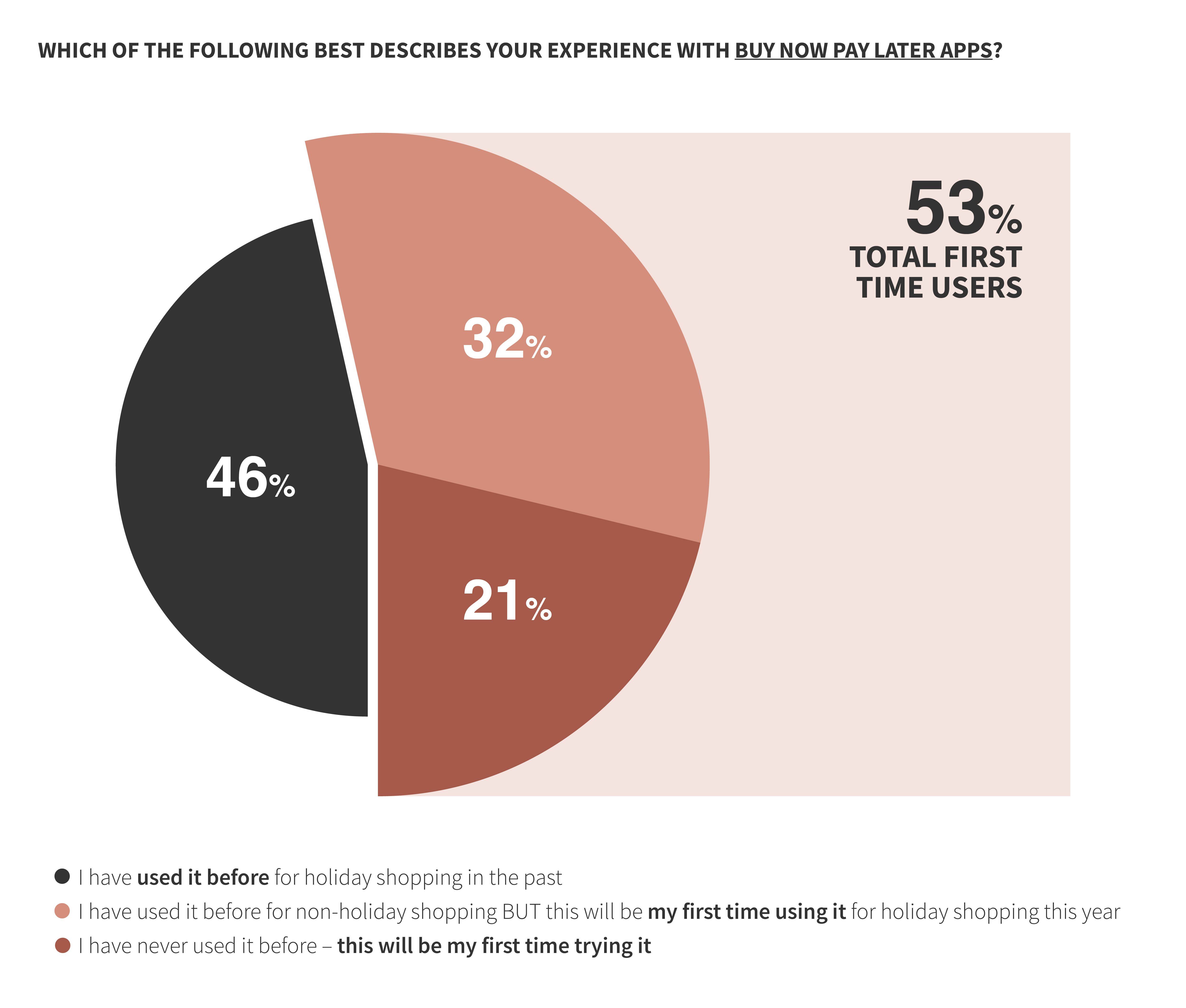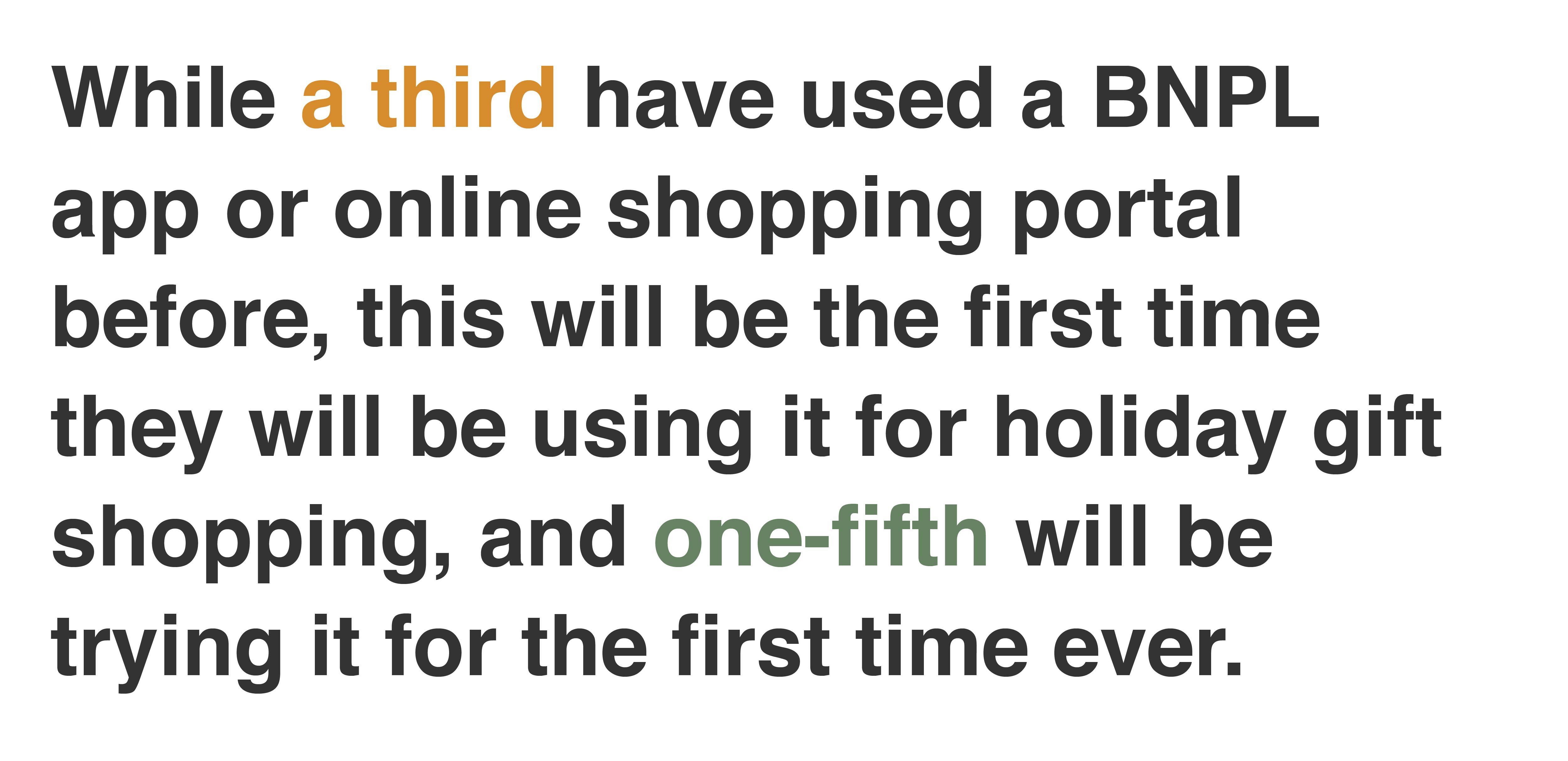 While a third have used a BNPL app or online shopping portal before, this will be the first time they will be using it for holiday gift shopping, and one-fifth will be trying it for the first time ever.