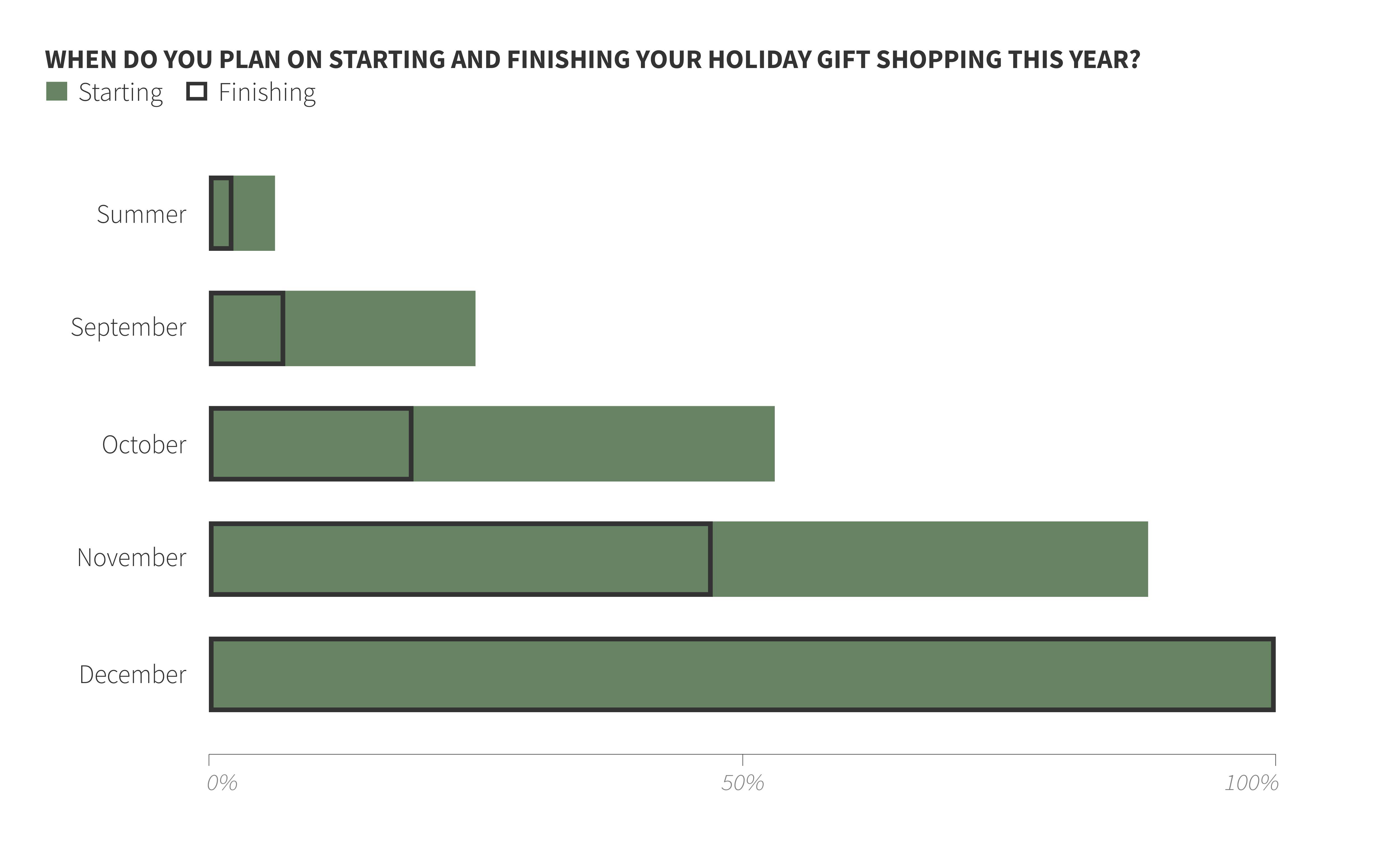 In line with their value-seeking behaviors, consumers expect to start holiday shopping earlier to get the best deals. About half of consumers are also concerned with supply chain challenges, which is another key motivator to start shopping earlier. One in four consumers will have started their holiday shopping by the end of September, and half plan on having most of their holiday shopping done by the end of November.
