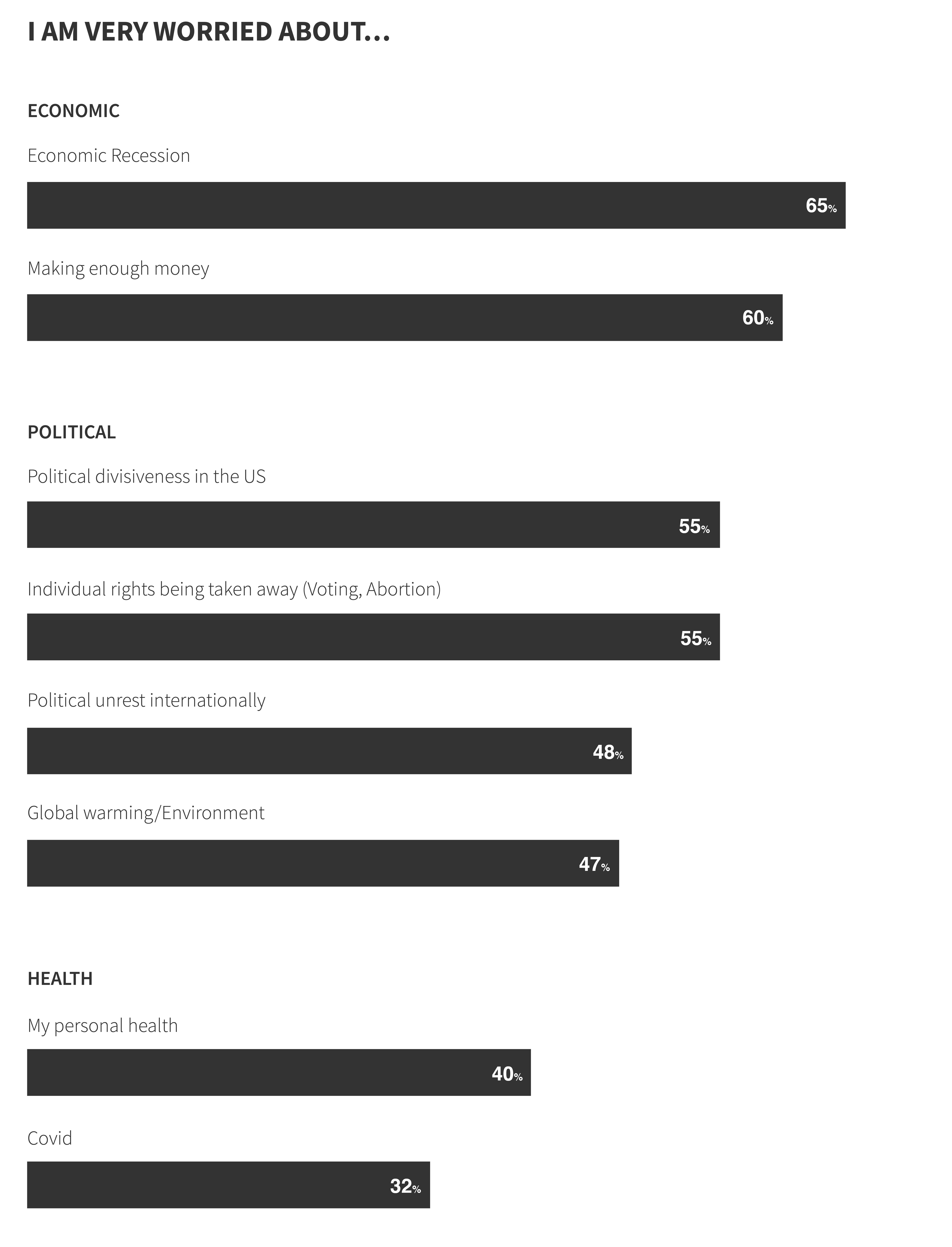 Working with SightX, we surveyed 4,000 people with the goal of understanding the various anxieties and struggles consumers are now facing — whether they be political, economic, or health-related.