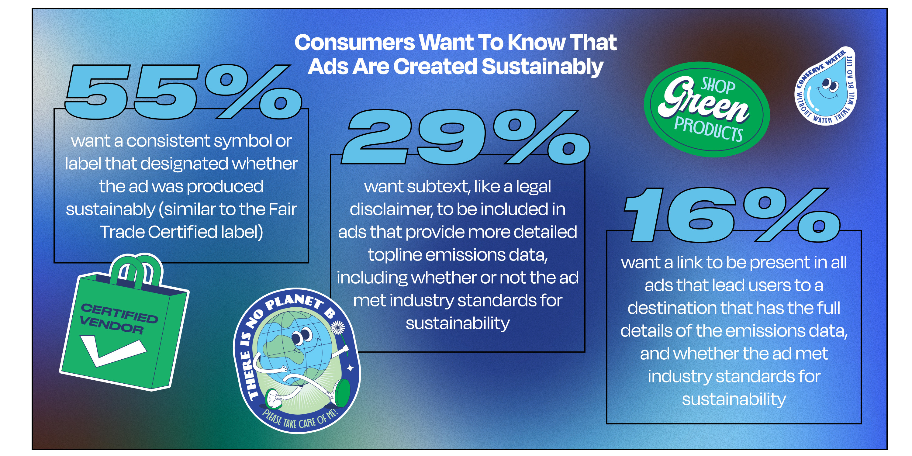 But how would they know if a brand actively measured and reduced their CO2 tied to their advertising? We asked our respondents what indicators they’d prefer in order to be informed of this, and more than half felt a symbol was needed, similar to the fair trade symbol.