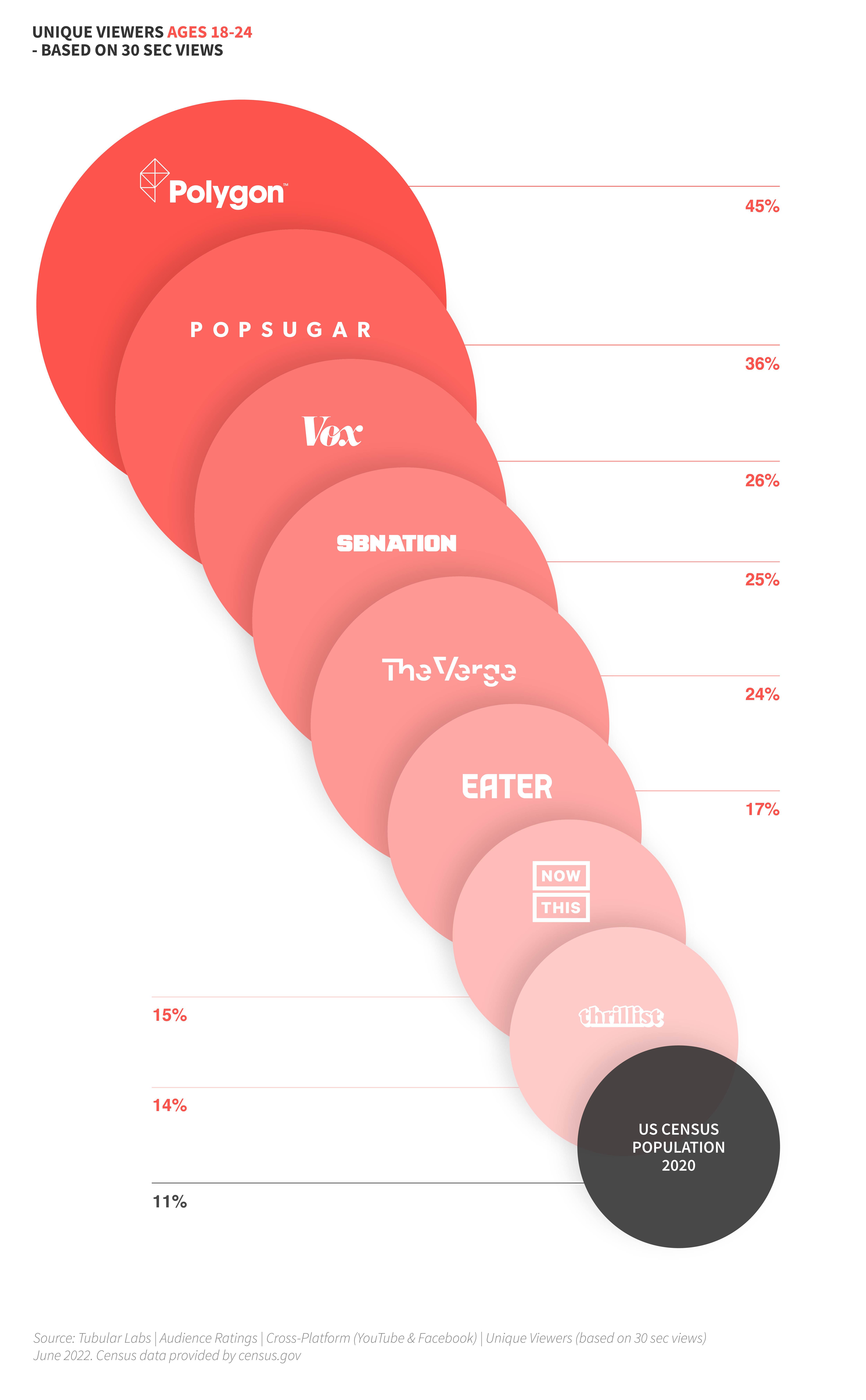 Vox Media delivers stronger engagement with adults ages 18-24 than all competitive portfolios and an overwhelming number of Vox Media brands over-index for connecting with a Gen Z audience. This is a testament to Vox Media’s deep understanding of Gen Z’s daily consumption habits, content preferences, and unique perspective, resulting in a powerful bond with the next generation of consumers.